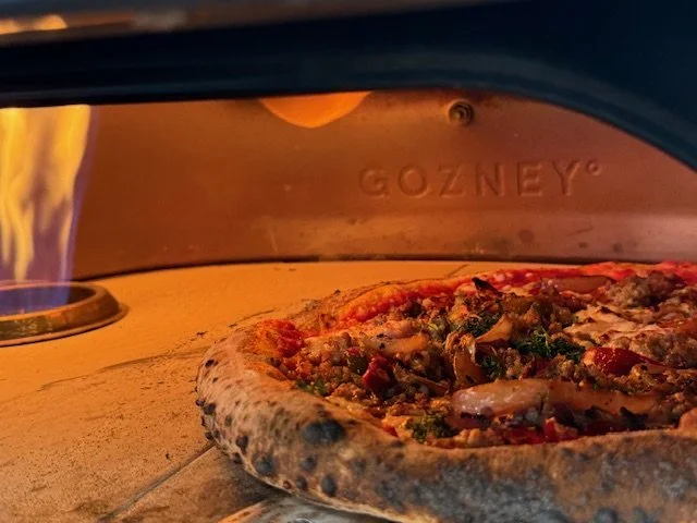 Sweet Sausage, Caramelized Onion, Sauce, Mozzarella, Pickled Peppers, Herbs, Gouda, Roasted Garlic